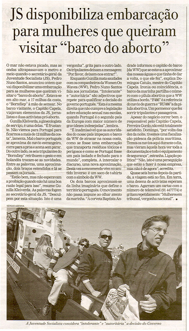 JS disponibiliza embarção para mulheres que queiram visitar "barco do aborto"