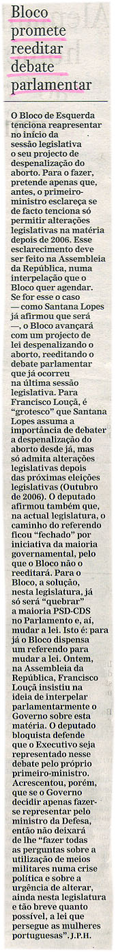 Bloco promete reeditar debate parlamentar