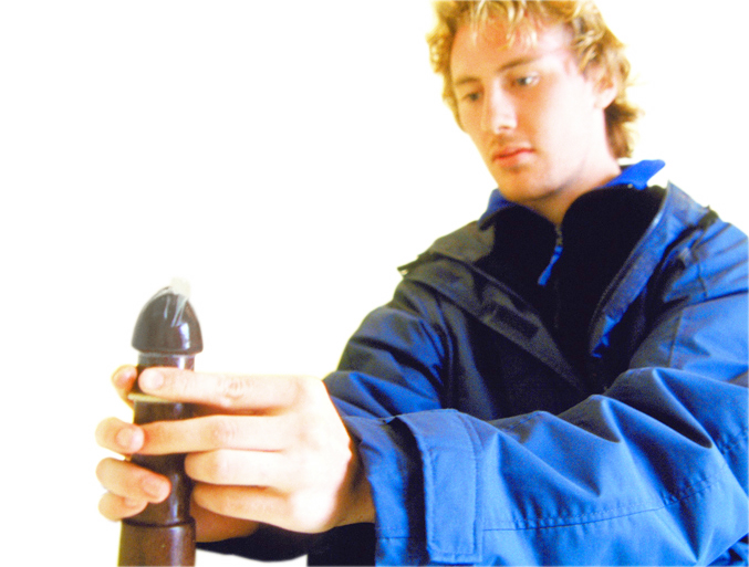 Boy learning to use condoms in a sexual education workshop in Poland, July 2003. Image copyright Women on Waves 2004.
