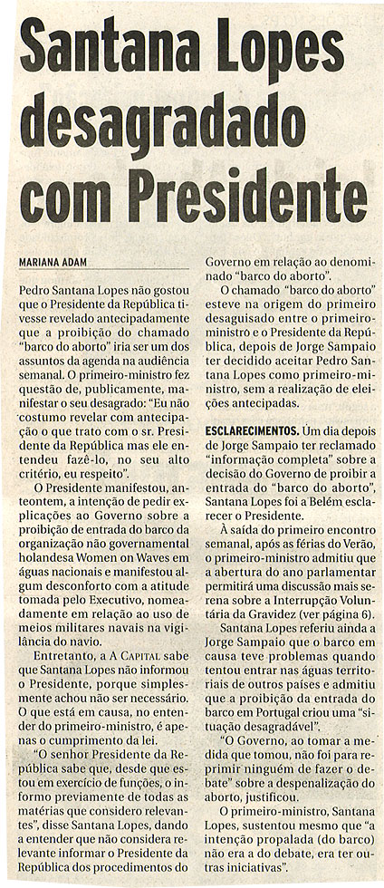Santana Lopes desagradado com Presidente