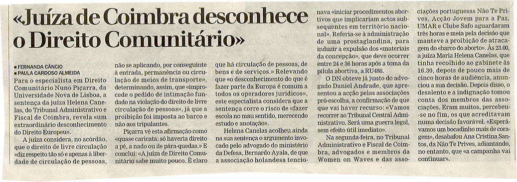 "Juíza de Coimbra desconhece o Direito Comunitário"