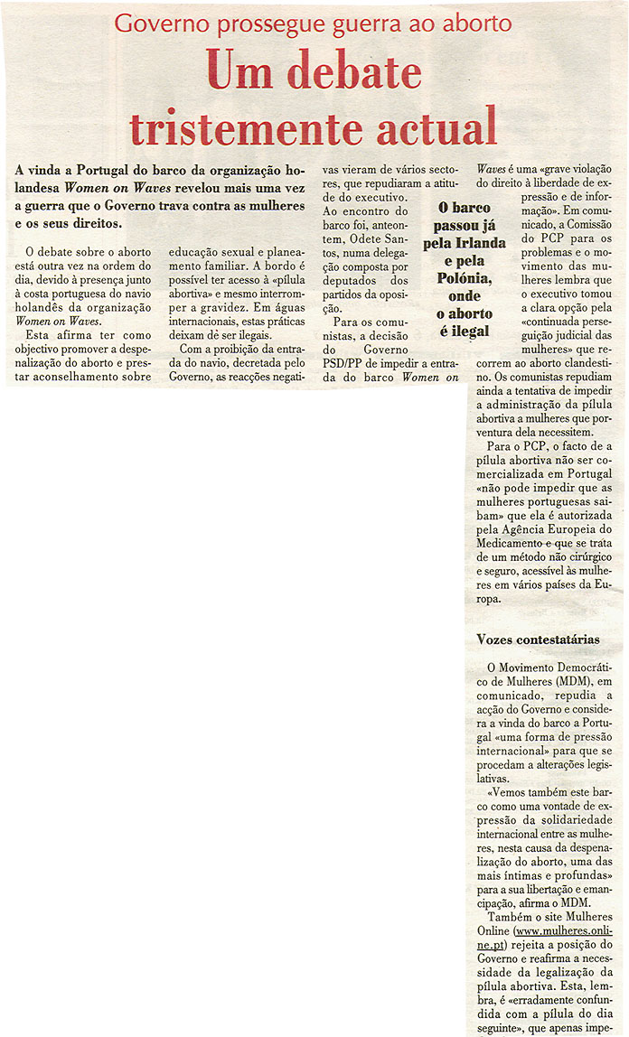 Um debate tristemente actual