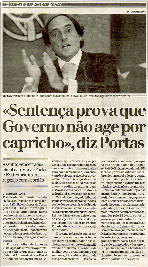 "Sentença prova que Governo não age por carpicho", diz Portas