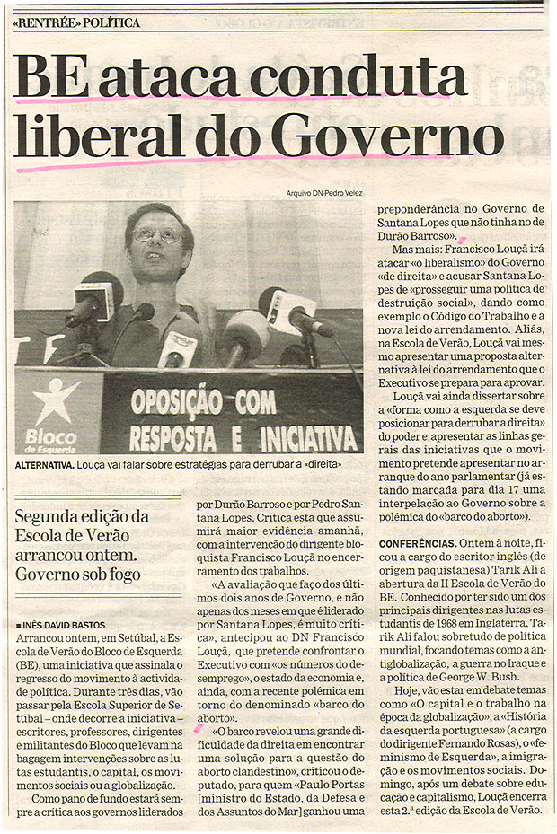 BE ataca conduta liberal do Governo