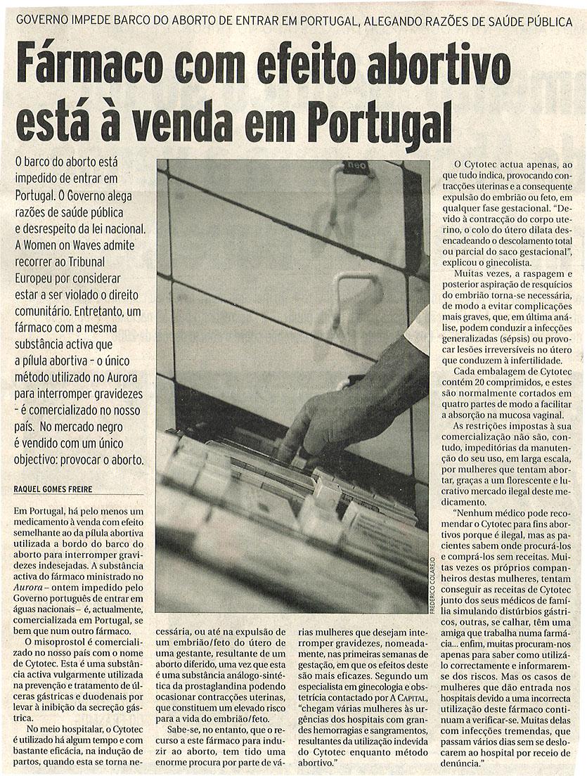 Fármaco com efeito abortiva está à venda em Portugal