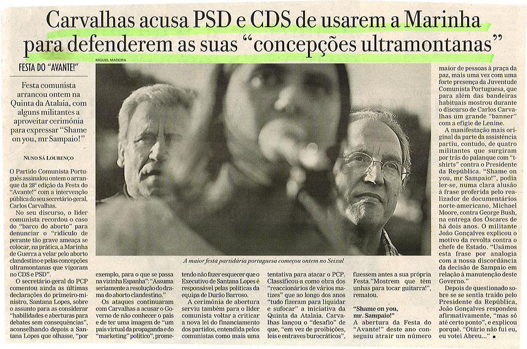 Carvalhas acusa PSD e CDS de usarem a Marinha para defenderem as suas "concepções ultramontanas"