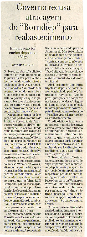 Governo recusa atracagem do "Borndiep" para reabastecimento