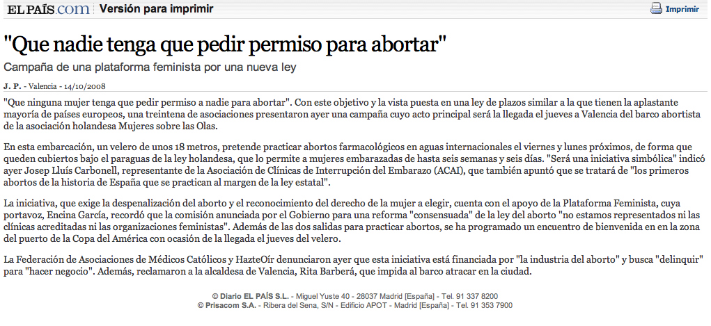 Media abortion ship in Spain 2008