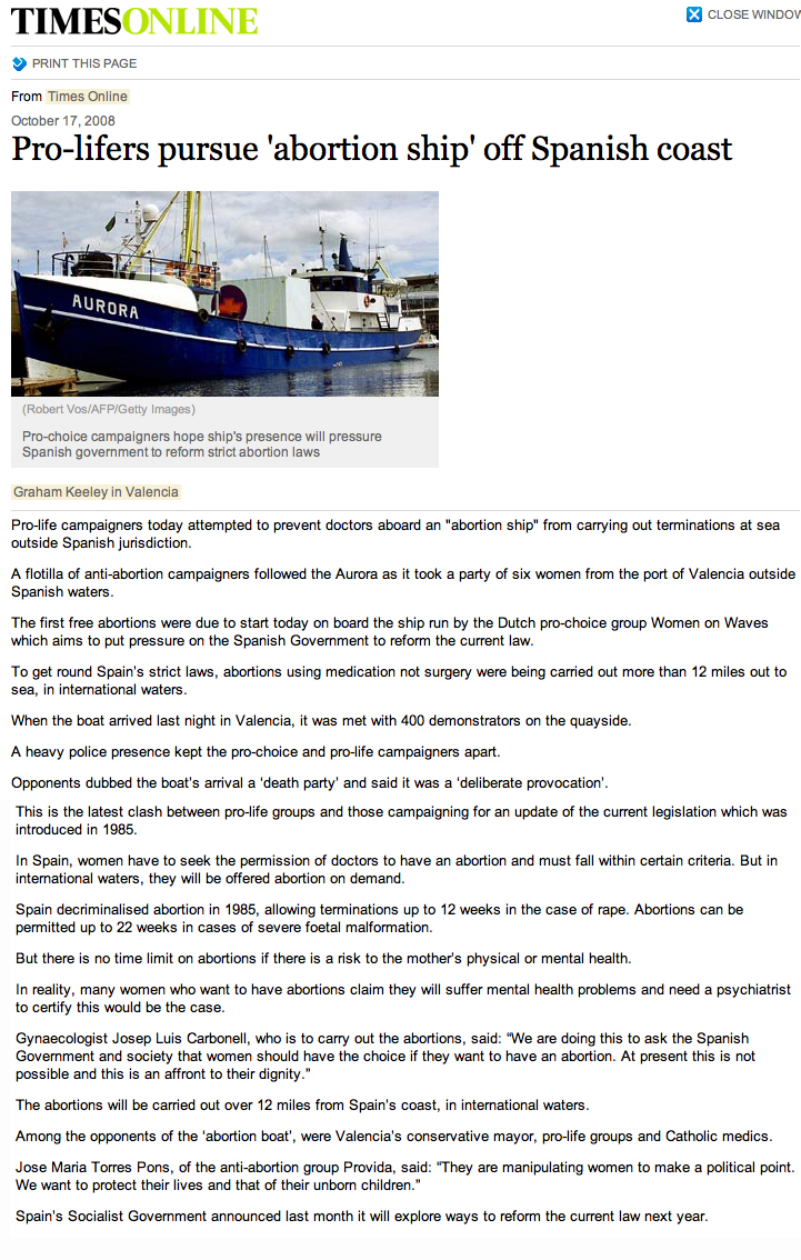 Pro-lifers pursue 'abortion ship' off Spanish coast