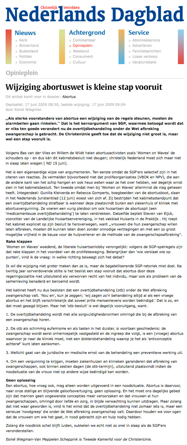 Reactie Christen Unie