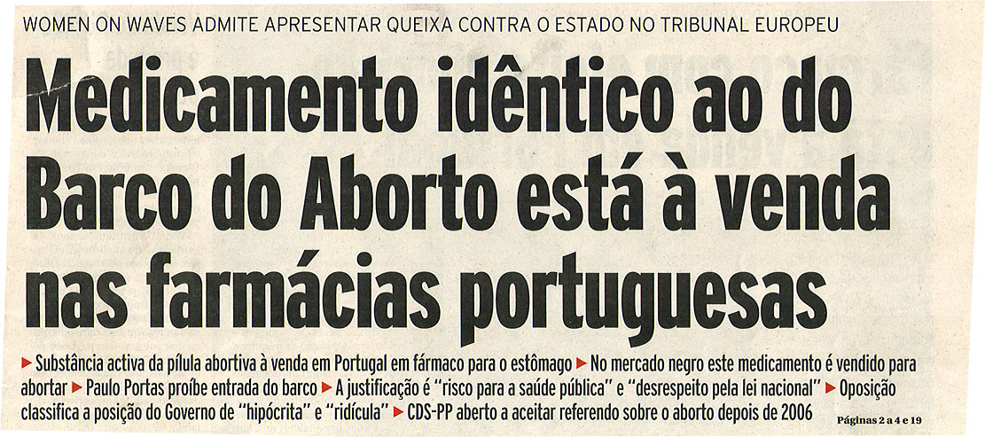Medicamento idêntico ao do Barco do Aborto está à venda nas farmácias portuguesas