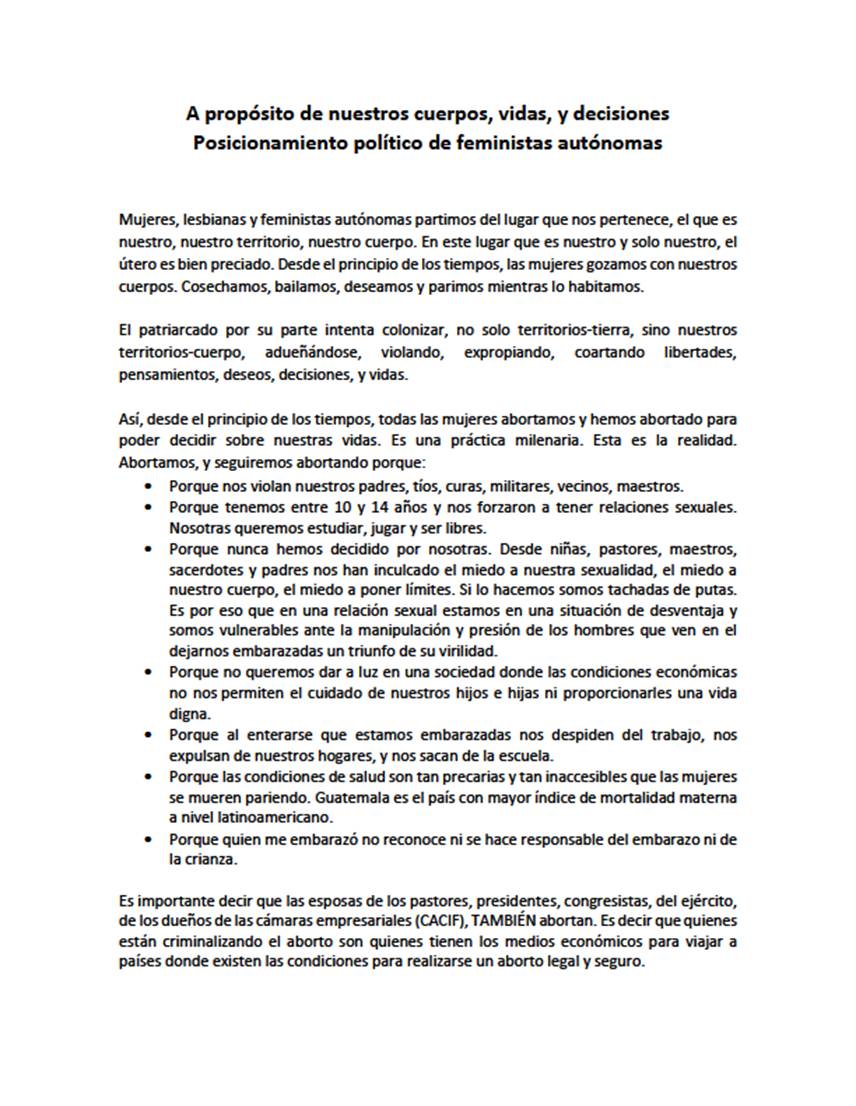 Posicionamiento Feministas autónomas Guatemala 1
