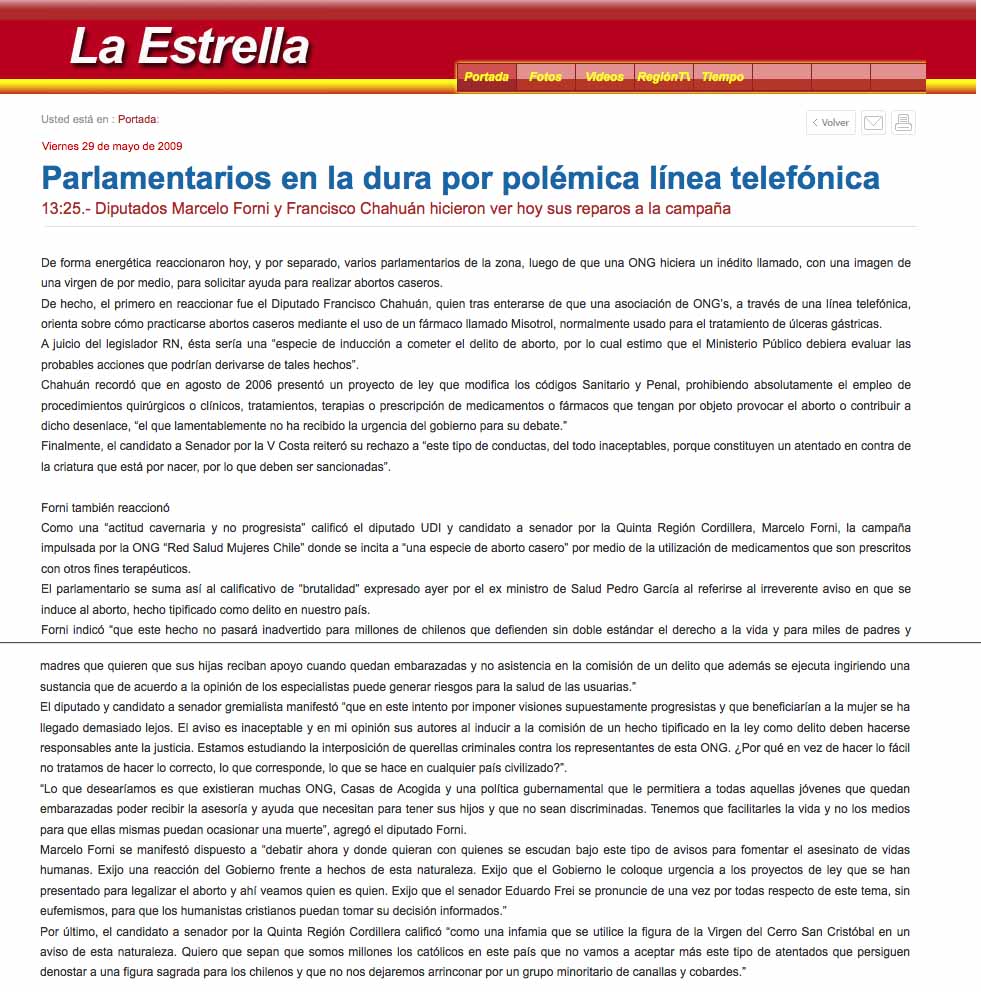 Media launch safe abortion hotline Chile 2009