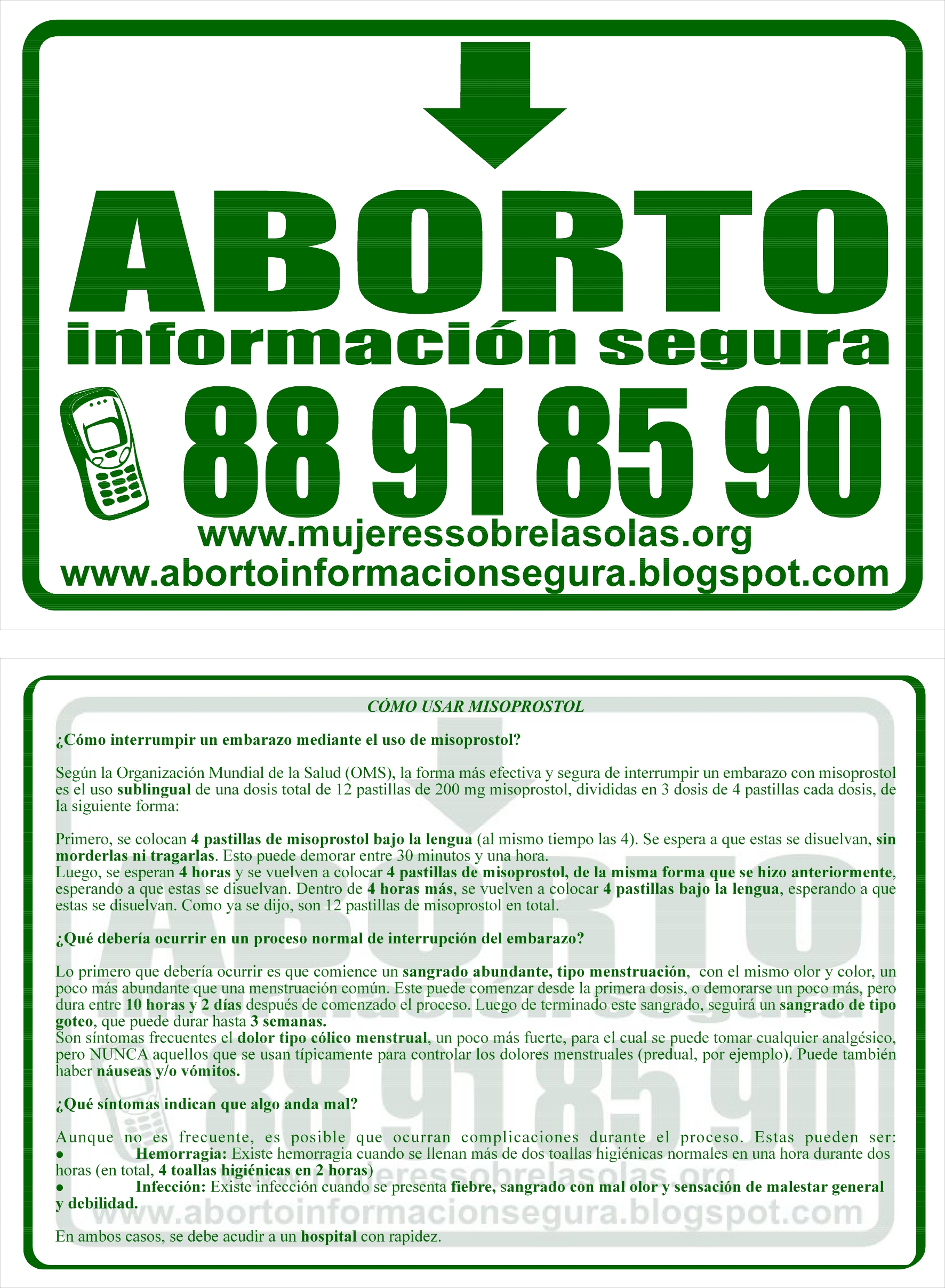 Safe abortion hotline Chile, May 2009