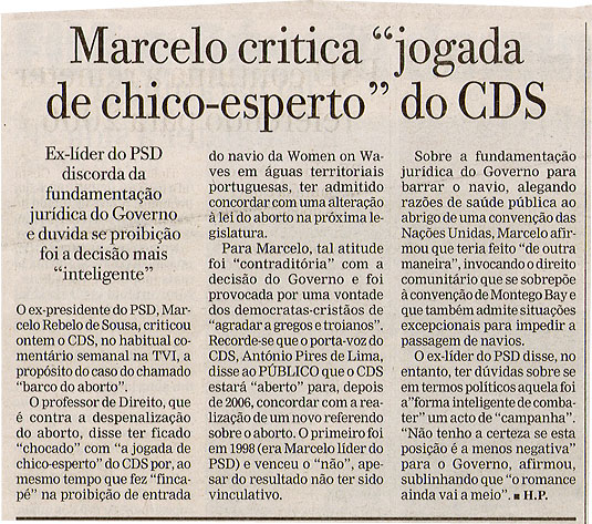 Marcelo critica 'jogada de chico-esperto" do CDS