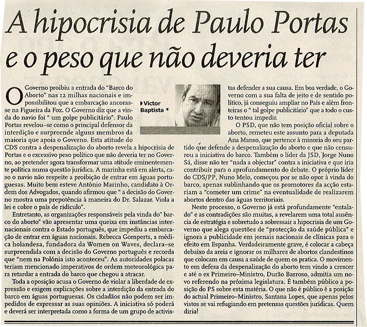 A hipocrisia de Paulo Portas e o peso que não deveria ter