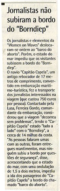 Jornalistas não subiram a bordo do "Borndiep"