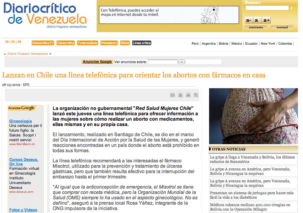 Media launch safe abortion hotline Chile 2009