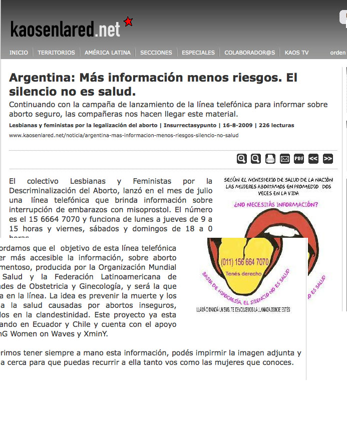 Media launch safe abortion hotline Argentina 2009