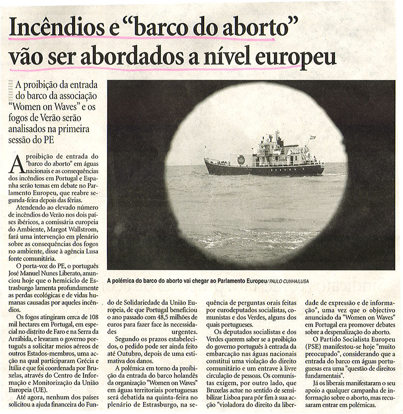 Incêndios e 'Barco do Aborto" vão ser abordados a nível europeu