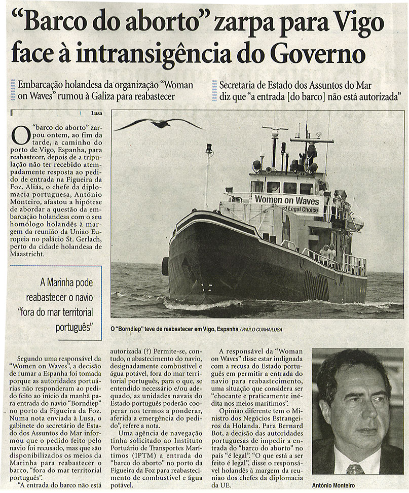 "Barco do aborto" zarpa para Vigo face à intransigência do Governo