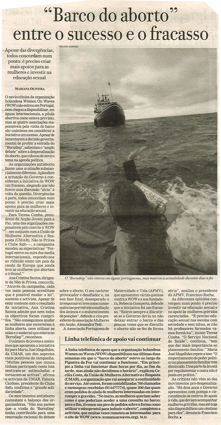 "Barco do aborto" entre o sucesso e o fracasso