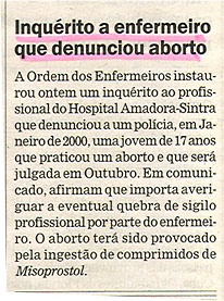 Inquérito a enfermeiro que denunciou aborto