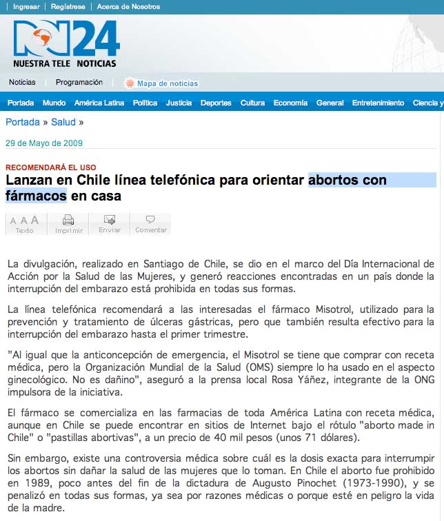 Media launch safe abortion hotline Chile 2009
