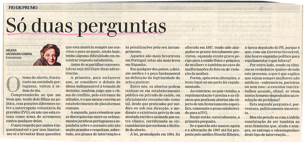 Só duas perguntas