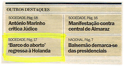 'Barco do aborto regressa à Holanda'