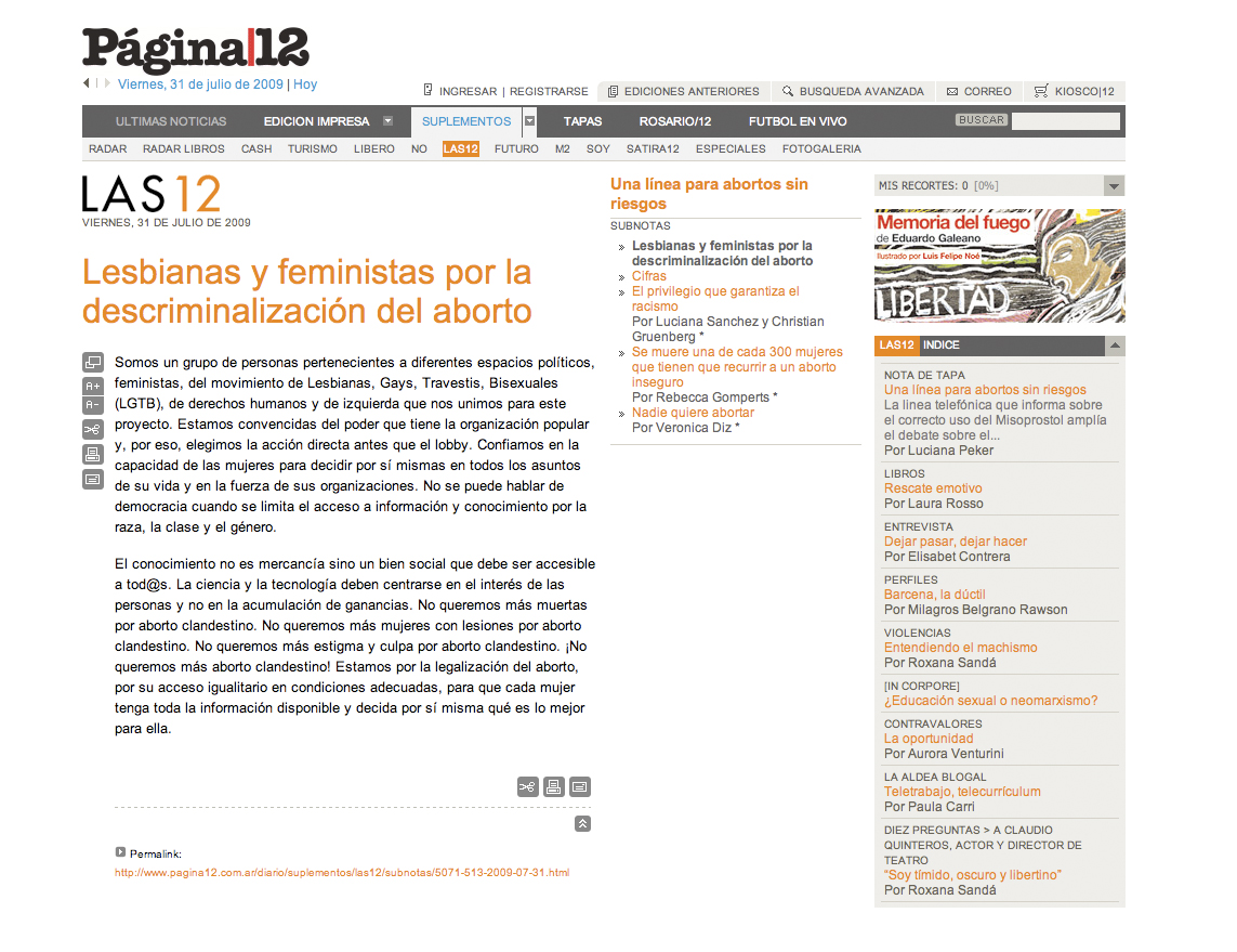 Pagina 12, Lesbianas y Feministas por la Descriminalización del aborto