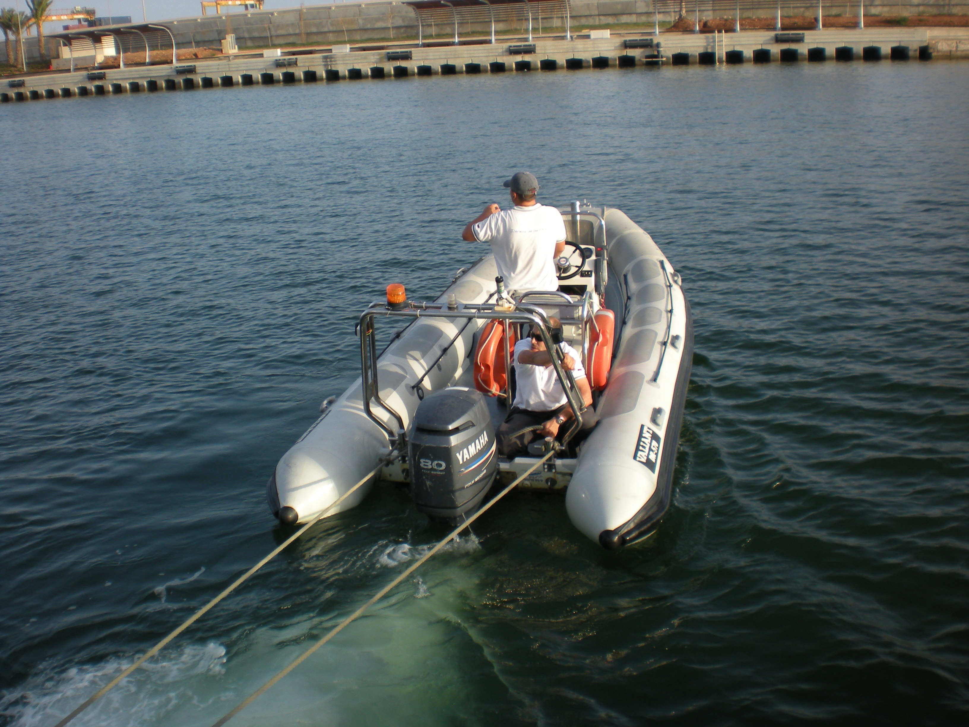 After the ship arrived, two small boats tried to pull it away from the quay.
