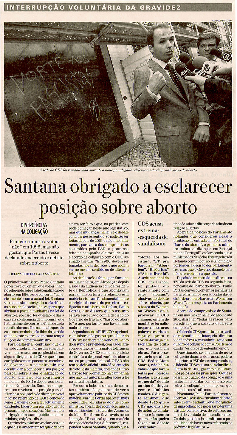 Santana obrigado a esclarecer posição sobre aborto