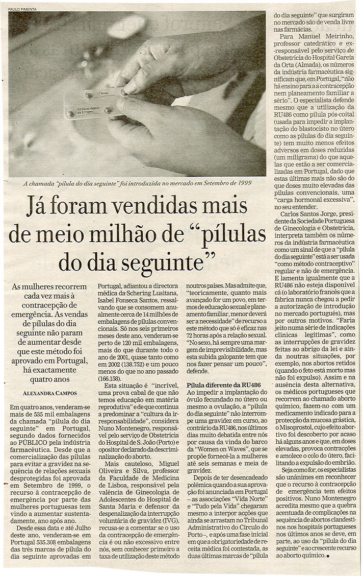 Já foram vendidas mais de meio milhão de "pílulas do dia seguinte"