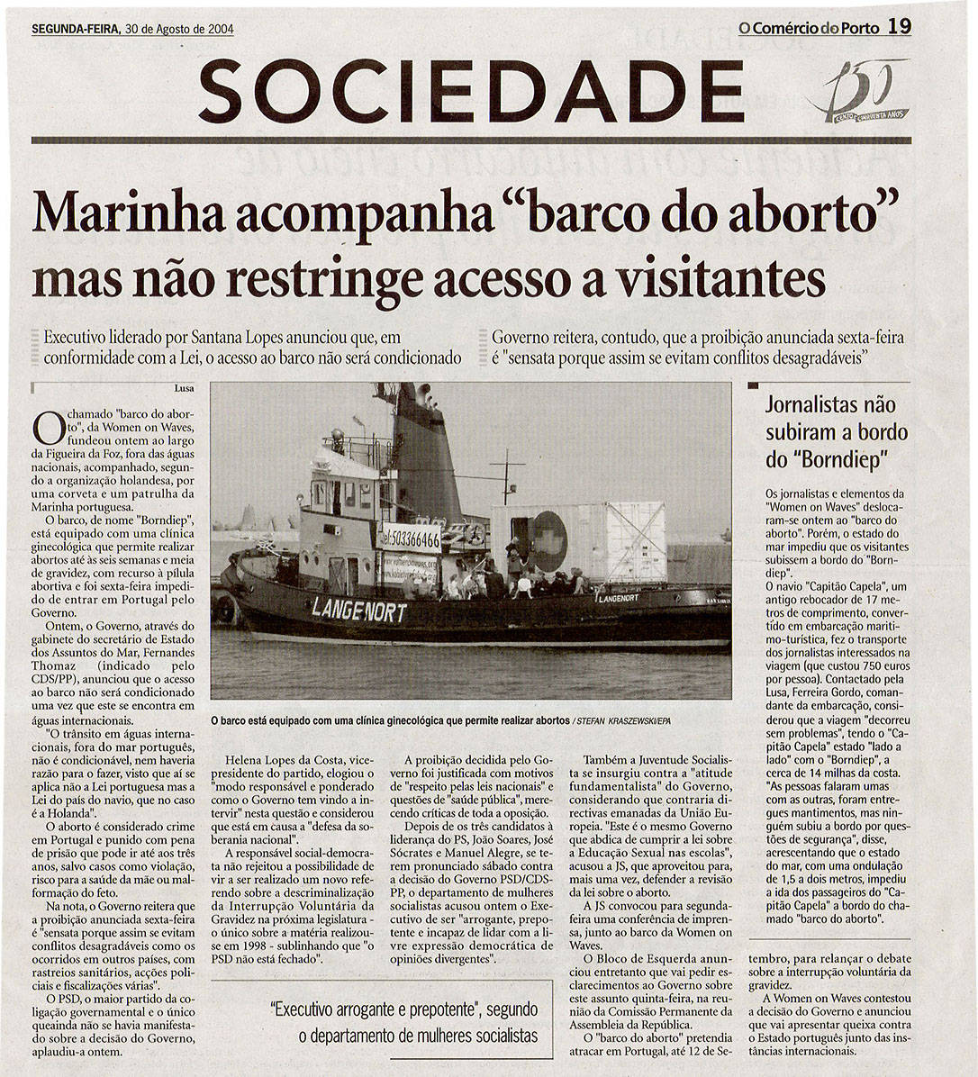 Marinha acompanha "barco do aborto" mas nao restringe acesso a visitantes