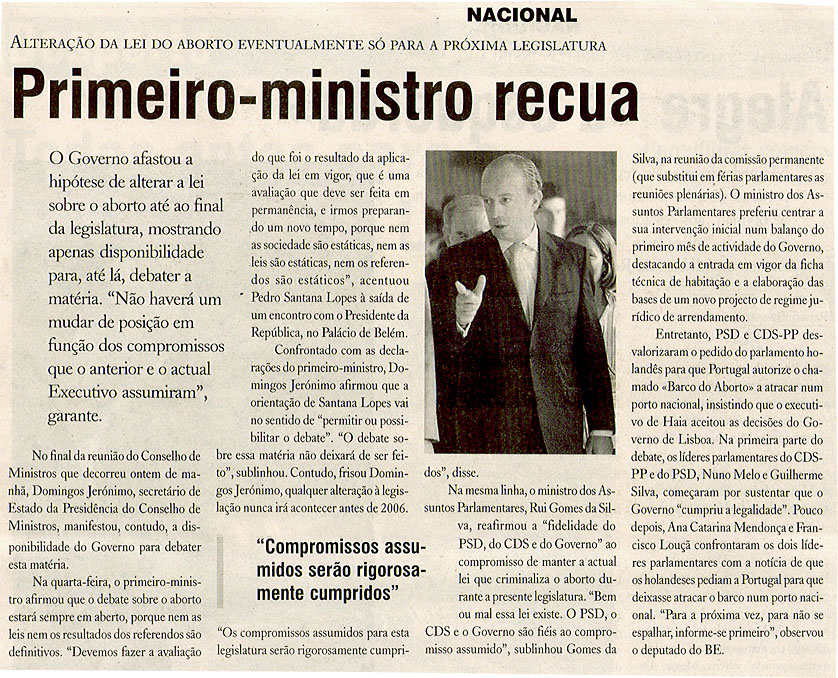Primeiro-ministro recua
