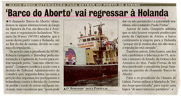 'Barco do Aborto' vai regressar à Holanda