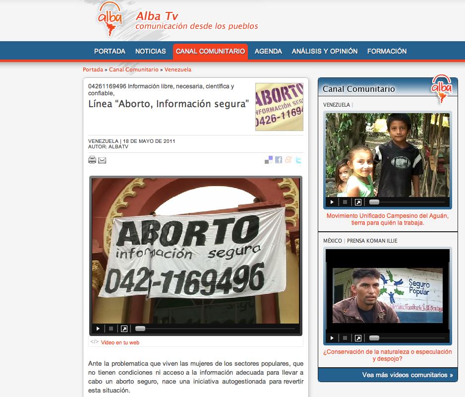 Media launch safe abortion hotline Venezuela 2011
