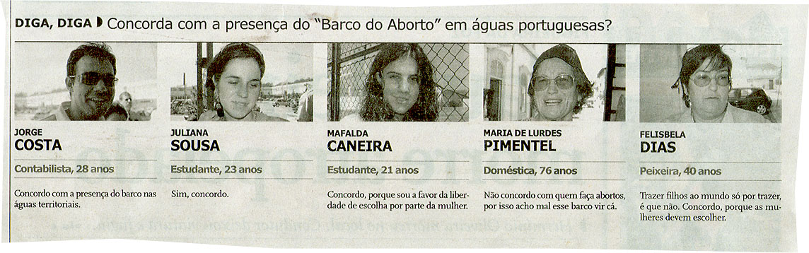 Diga, Diga. Concorda com a presença do 'Barco do Aborto' em águas portuguesas?