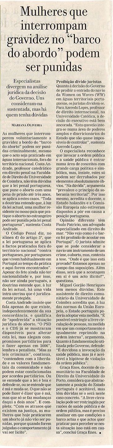 Mulheres que interrompam gravidez no "barco do abordo" podem ser punidas