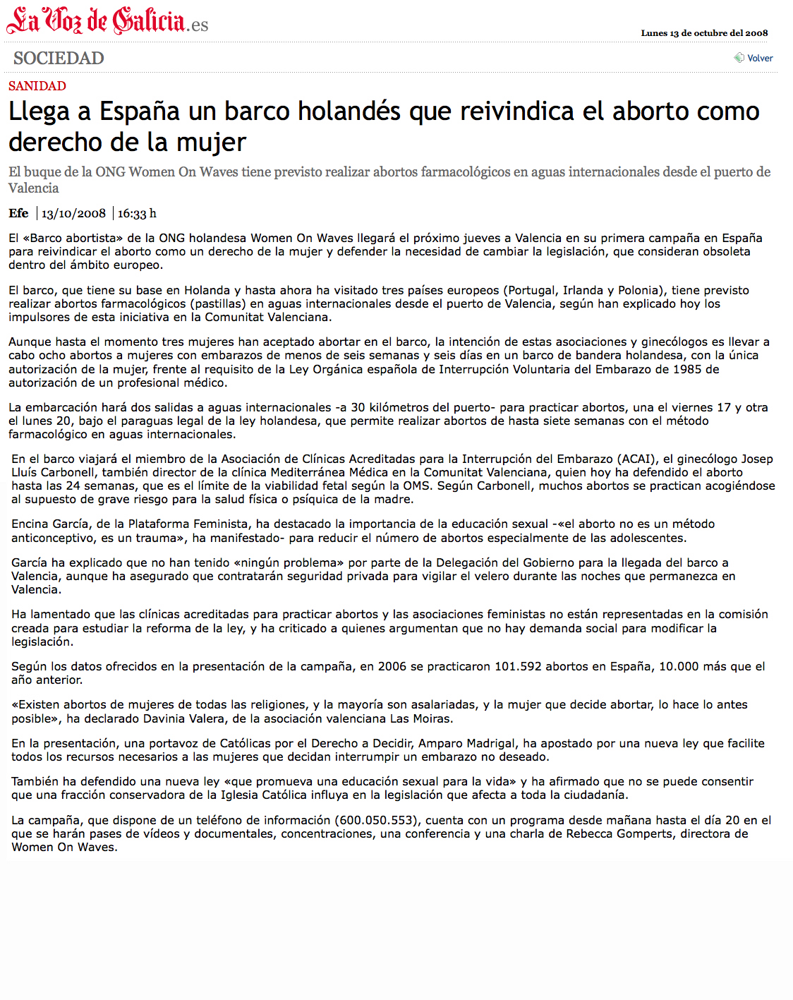 Media abortion ship in Spain 2008